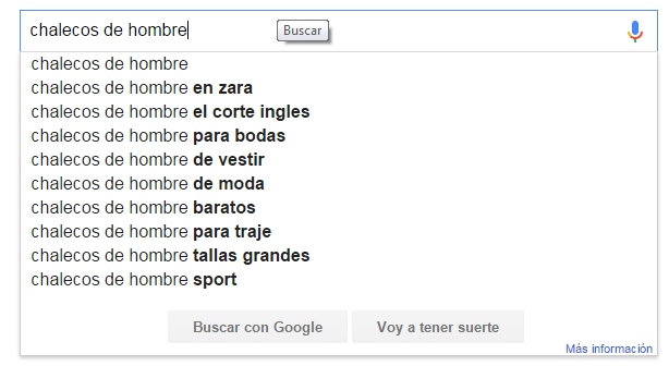 Si quieres dar un giro de tuerca más te recomiendo que a lo largo del contenido utilices keywords relacionadas, sinónimos y variantes de la keyword principal. Por ejemplo, si estamos optimizando una página para la palabra clave chalecos de hombre, trataremos de meter sinónimos y variantes como chalecos de caballero, chalecos para hombre, jersey de hombre, etc.
